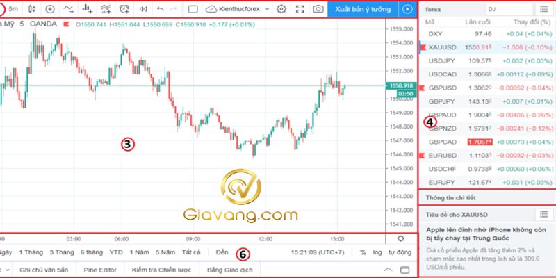 Giao diện biểu đồ TradingView gồm những gì?