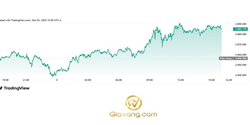 Mức này đã chứng tỏ là mức hỗ trợ vững chắc trong ngắn hạn cho kim loại màu vàng và giá vàng đã tăng cao hơn nữa qua đêm, đạt đỉnh trong ngắn hạn là 3.870 đô la một ounce vào lúc 2:30 sáng.