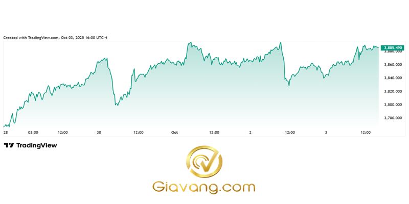 Theo Kitco News, Vàng tăng giá trong tuần này khi việc chính phủ Hoa Kỳ đóng cửa đã tạo thêm một lý do để bán đô la và chuyển sang tài sản cứng, đẩy giá kim loại màu vàng lên mức 3.900 đô la