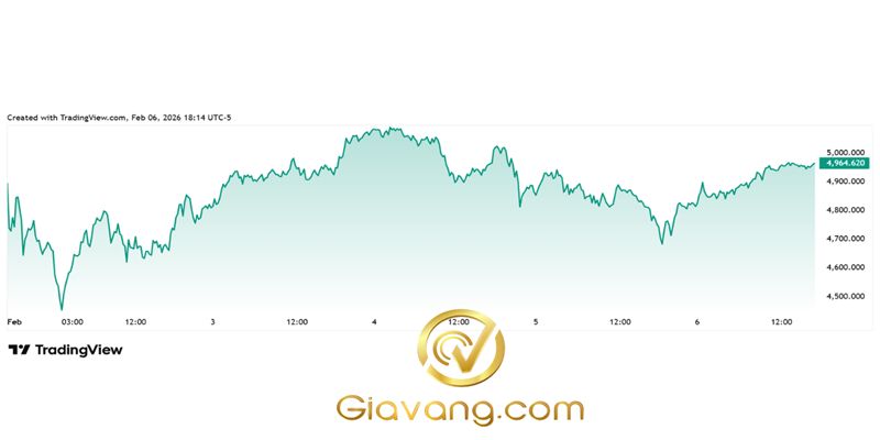 Tại thời điểm viết bài, giá vàng giao ngay được giao dịch lần cuối ở mức 4.964,62 USD/ounce, tăng 2,70% so với tuần trước và 3,85% so với ngày hôm nay.