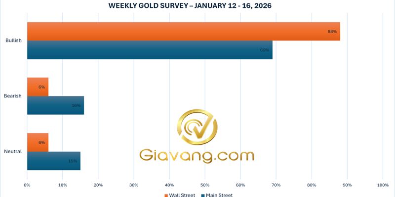 Trong khi đó, cuộc thăm dò trực tuyến của Kitco đã thu được 268 phiếu bầu, cho thấy tâm lý lạc quan của các nhà đầu tư nhỏ lẻ vẫn duy trì ở mức cao gần đây.