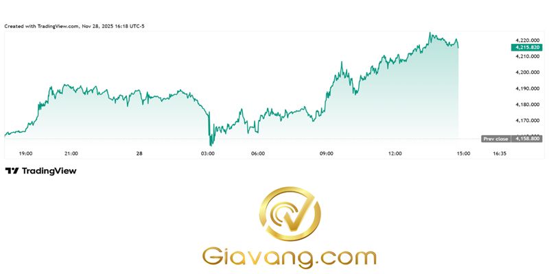 Với biên độ cao hơn hiện đã được thiết lập vững chắc, các nhà giao dịch châu Á đã nhanh chóng đẩy giá vàng lên mức cao mới trong tuần, chỉ cách mốc 4.170 đô la một ounce. Sau đó, kênh giá tiếp tục thu hẹp, với giá vàng giao ngay dao động trong khoảng từ 4.145 đến 4.170 đô la trong suốt kỳ nghỉ Lễ Tạ ơn của Hoa Kỳ.