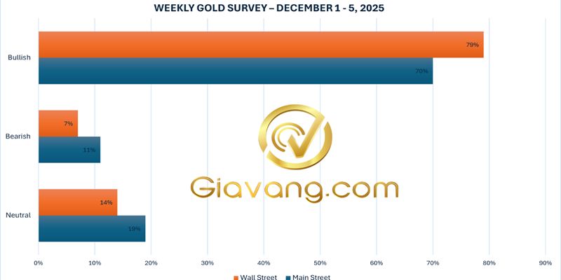 183 nhà giao dịch bán lẻ, tương đương 70%, dự đoán giá vàng sẽ tăng cao hơn vào tuần tới, trong khi 29 nhà giao dịch khác, tương đương 11%, dự đoán kim loại quý này sẽ giảm giá. 48 nhà đầu tư còn lại, chiếm 19% tổng số, kỳ vọng giá sẽ ổn định trong tuần tới.