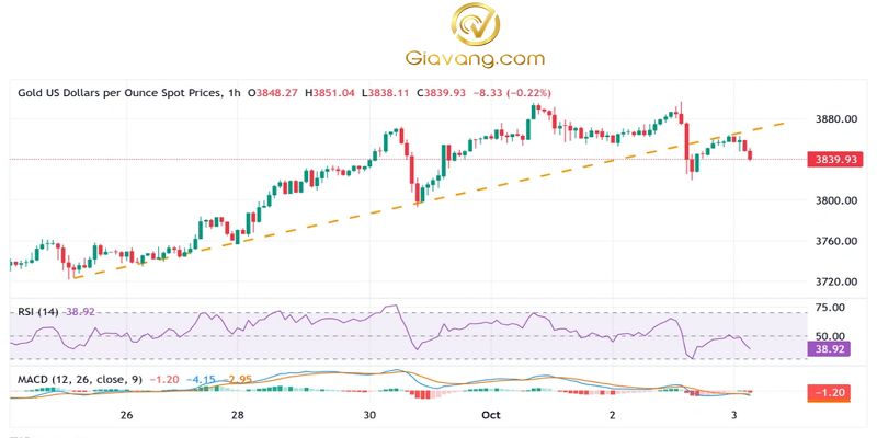 Giá vàng (XAU/USD) phục hồi nhẹ từ mức thấp nhất trong phiên giao dịch châu Á và hiện đang giao dịch trên mức 3.850 đô la, gần như không đổi trong ngày giữa những tín hiệu cơ bản trái chiều.