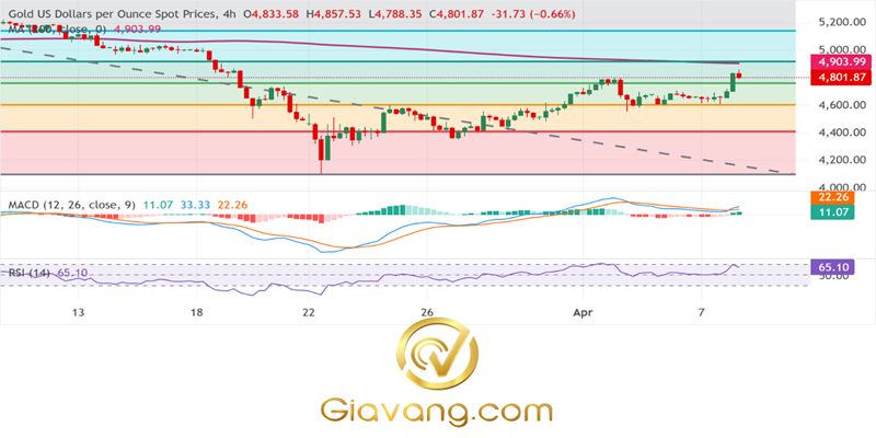 Iran tuyên bố đã chấp nhận thỏa thuận ngừng bắn hai tuần, và các cuộc đàm phán sẽ bắt đầu vào thứ Sáu tại Islamabad, Pakistan. Điều này, đến lượt nó, làm tăng niềm tin của các nhà đầu tư và làm suy yếu vị thế đồng đô la Mỹ như một loại tiền tệ dự trữ toàn cầu, có lợi cho giá vàng.
