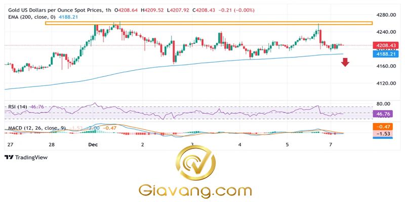 Đường trung bình động hàm mũ (EMA) 200 giờ đã cung cấp một số hỗ trợ cho cặp XAU/USD kể từ đầu tháng này. Mức hỗ trợ này hiện đang được neo giữ gần khu vực 4.190 đô la và sẽ đóng vai trò là điểm then chốt quan trọng cho các nhà giao dịch ngắn hạn.