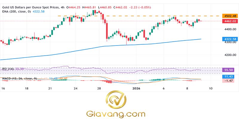 Cặp tỷ giá XAU/USD đang giữ vững trên đường trung bình động hàm mũ (EMA) 200 kỳ đang tăng, hiện đang ở mức gần 4.322,58 USD, duy trì xu hướng tăng chung. Độ dốc hướng lên của đường trung bình hỗ trợ các đợt điều chỉnh giảm.