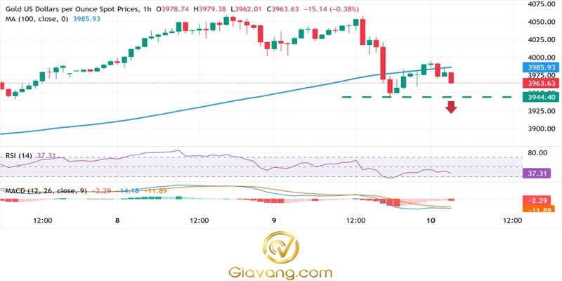 Giá vàng sau đó có thể đẩy nhanh đà giảm về phía kiểm tra mốc tròn 3.900 đô la.