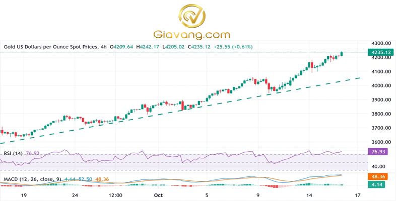 - Biểu đồ giá vàng thế giới hôm nay 16/10/2025