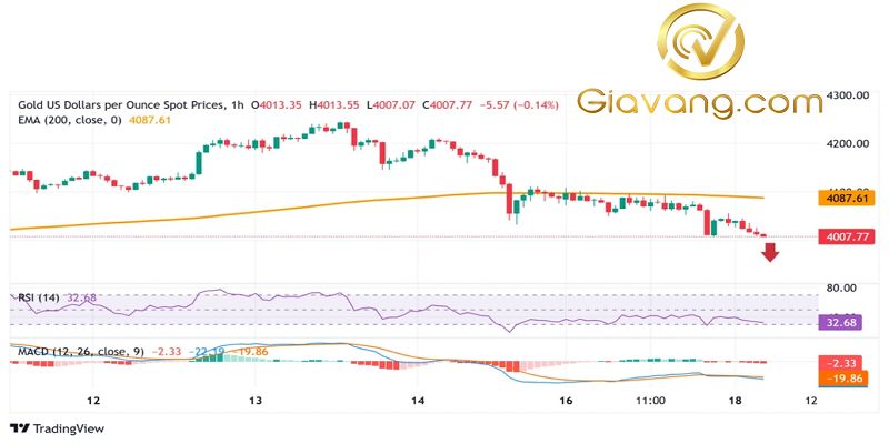 Giá vàng (XAU/USD) tiếp tục xu hướng giảm trong ngày thứ tư liên tiếp và giảm xuống mức thấp nhất trong hơn một tuần vào thứ Ba, mặc dù vẫn giữ vững được mốc tâm lý 4.000 USD trong phiên giao dịch châu Á.