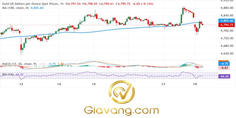 Cặp tỷ giá XAU/USD đang gặp khó khăn trong việc tận dụng đợt phục hồi trong ngày vượt qua đường trung bình động đơn giản (SMA) 100 giờ hoặc tìm được điểm tựa trên mốc 4.800 USD.