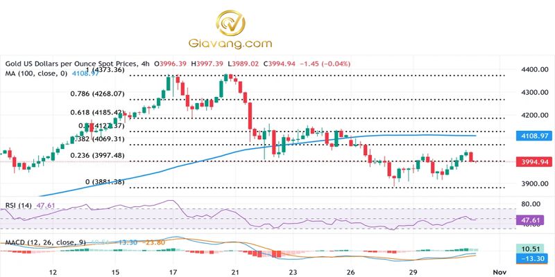 Vùng này có thể đóng vai trò là điểm then chốt, mà trên đó, một đợt bán khống mới có thể đẩy giá vàng vượt qua vùng 4.075 đô la (mức Fibo 38,2%), hướng tới mốc 4.100 đô la.